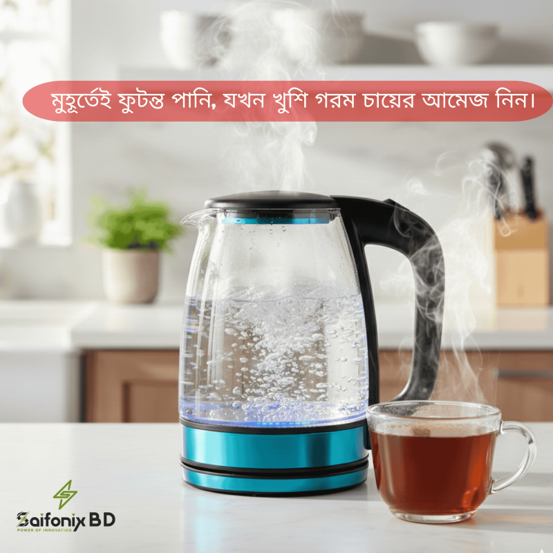 - 💡 মন্ত্রমুগ্ধকর নীল LED আলো: পানি ফোটানোর সময় আকর্ষণীয় নীল আলো জ্বলে উঠতে দেখুন!