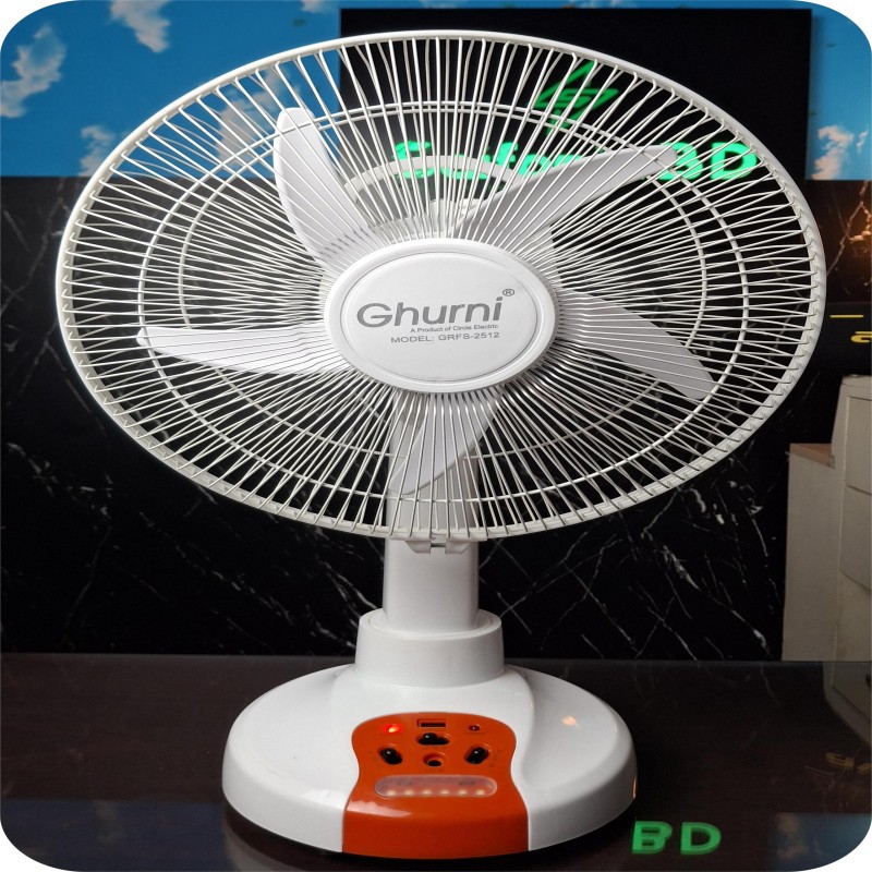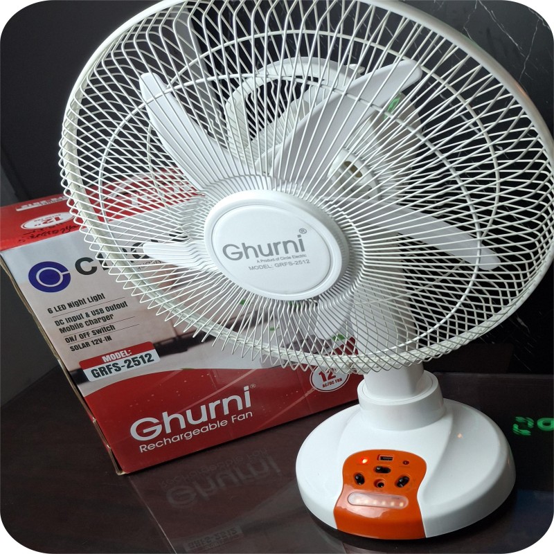 Circle Ghurni 12" Rechargeable AC/DC Fan with 6 LED Night Light & Mobile Charging Port – 6 Months Warranty
